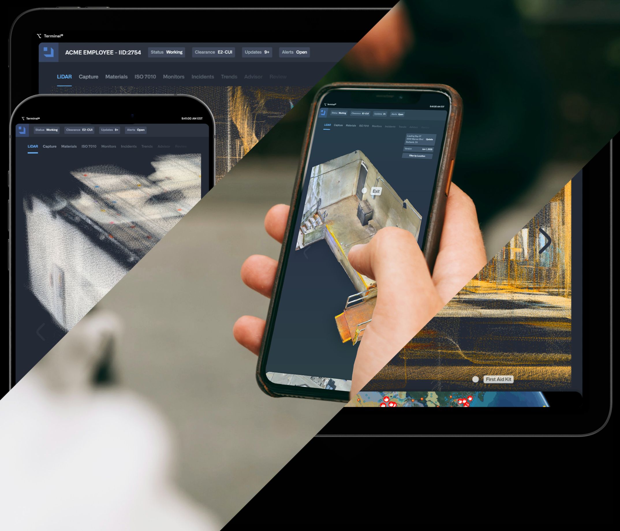 This revolutionizes how employees perceive their surroundings in critical situations. LIDAR scans are initially collected by any employee that works at the location, in under five minutes, collected data is then sent for modeling, annotation, and integration. This allows employees to visualize the escape routes and safety equipment locations from their desks, offices, workstations, etc. Atrisk LIDAR modeling gives employees an X-ray view of their location, for engaging and enjoyable visualization of their safest exit routes and their spatial relationship to the fire extinguishers, medical supplies, fire alarms, and more within their location.