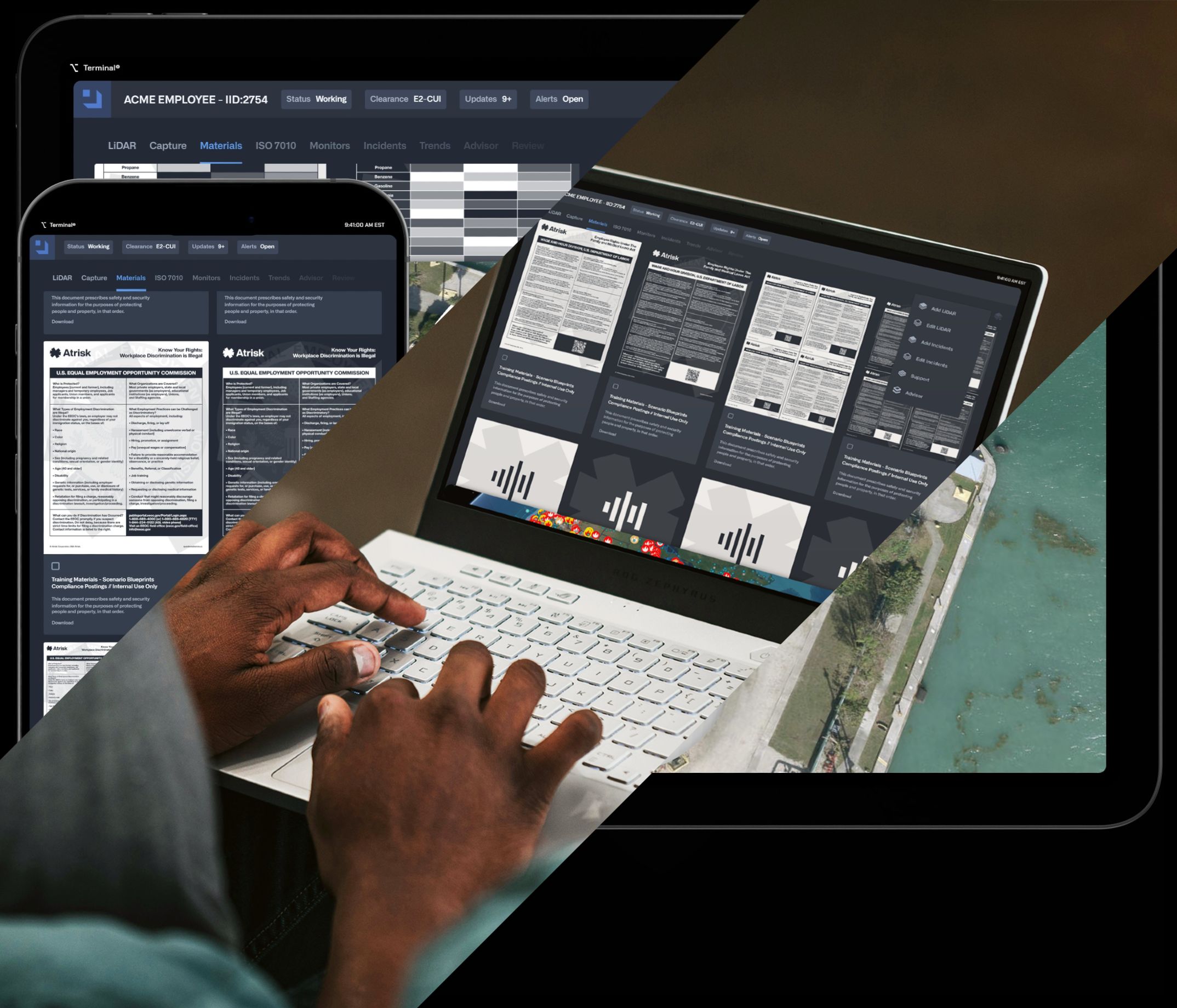 Make dull tasks feel like special operations; with readiness, duty, and honor. Employee Terminal serves as the center for continuous exposure to safety and security, including the on-board library of Training Materials, Trend Reports, and more. Depending on their Clearance Level, employees have round-the-clock access to the tools and services; this in part ensures that your workforce not only knows the latest information but is also ready to respond with a plan instinctively.